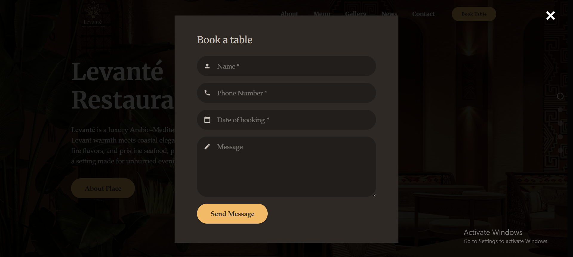 Design and develop a luxury restaurant website that reflects Levanté’s Arabic–Mediterranean identity and premium dining experience.